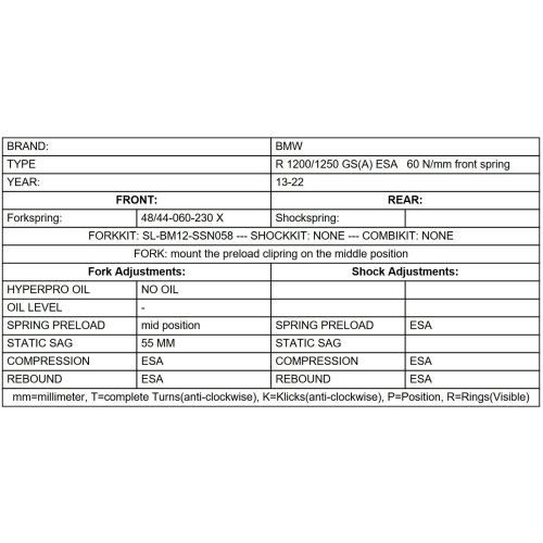 Austauschfedern linear vorn und hinten für BMW R1200GS / R1250GS Adventure 2013-2024 „Original Federbeine mit BMW Dynamic ESA“