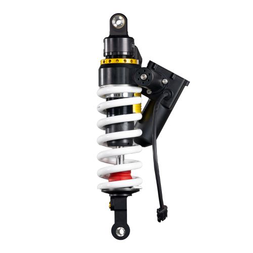 Verschiedene Einstellmöglichkeiten machen die „Limited Edition“ Federelemente zu einem flexiblen System. Während die Zugstufendämpfung am Federbeinfuß eingestellt wird, lässt sich die doppelte Druckstufeneinstellung am Ausgleichsbehälter über einen besonders weiten Einstellbereich präzise anpassen. Der Low- und High-Speed-Bereich lässt sich zudem besonders einfach durch unterschiedlich farblich gekennzeichnete Einsteller justieren.