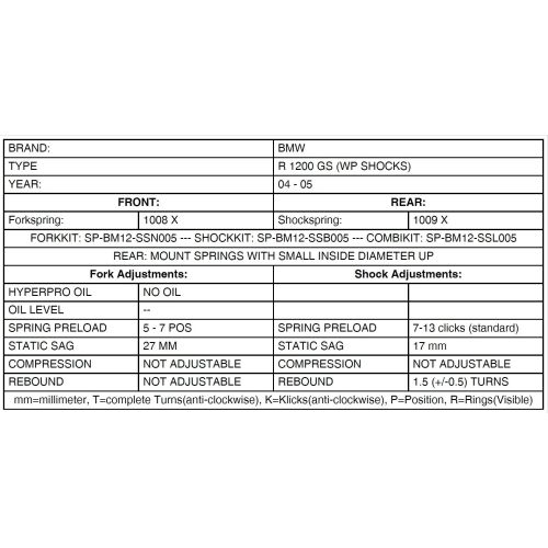 Info: Passt nur für *BMW R1200GS 04-05 mit WP Original BMW Federbeinen *