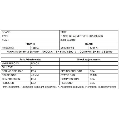 Info: Passt nur für *BMW R1200GS 2007-2010 mit Showa Original BMW ADV ESA Federbeinen*