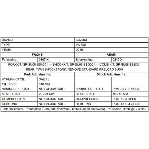 BLACK-T Austauschfedern für Suzuki VX 800 1990 - 1996 (TYP VS51A)