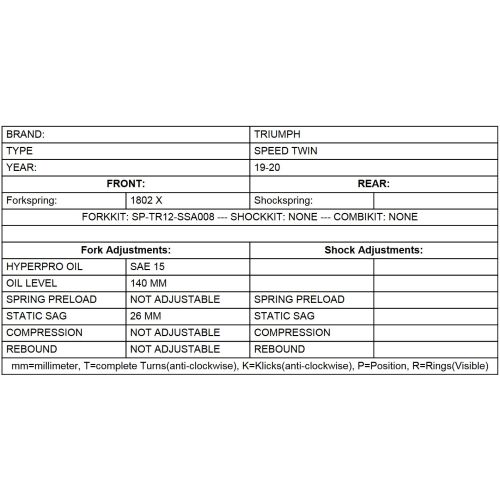 Diese progressiven Gabelfedern sind perfekt auf die Anforderungen der Gabel für die Triumph Speed Twin abgestimmt. Sie verleihen der Gabel eine bessere Abstimmung für die Anforderungen des Motorradreisens. Zu dem werden sie ein deutlich verbessertes Ansprechverhalten und höhere Reserven im Grenzbereich erfahren.