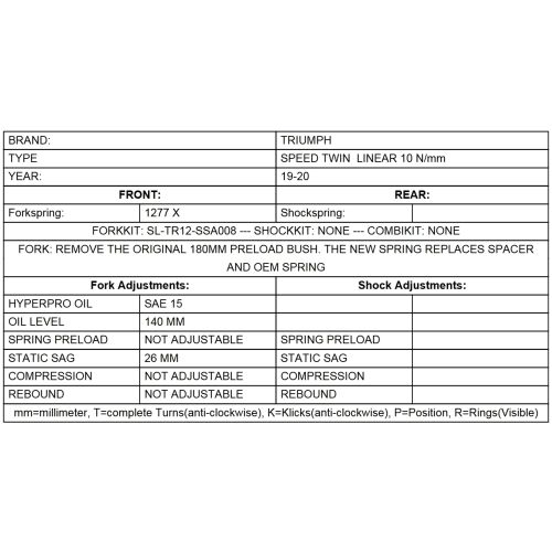 Diese linearen Gabelfedern sind perfekt um eine sportliche Abstimmung der Gabel für die Triumph Speed Twin zu erreichen. Sie verleihen der Gabel wesentlich höhere Reserven beim Anbremsen. Die sportlichere Abstimmung gibt wesentlich präzisere Rückmeldung der Gabel bei der Kurvenhatz mit Ihrer Speed Twin. Ein Sport Upgrade mit verbessertem Ansprechverhalten und höhere Reserven im Grenzbereich. Ideal in Kombination mit den Black-T Federbeinen