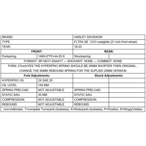 Info: Passt nur für die Original-Gabel der „Harley Davidson FLTRX SE CVO roadglide (2018-2022)“ mit 21 Zoll Vorderrad