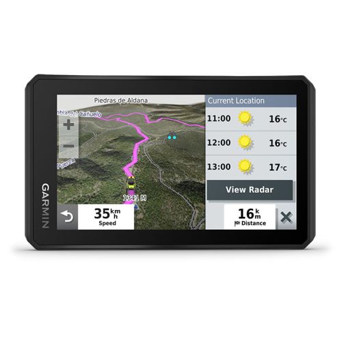 Ist für Ihre Route schlechtes Wetter angesagt? Koppeln Sie das Tread-Gerät mit Ihrem kompatiblen Smartphone und laden Sie die Tread-App herunter, um auf Live-Wetterdaten, animierte Radarbilder und mehr zuzugreifen.