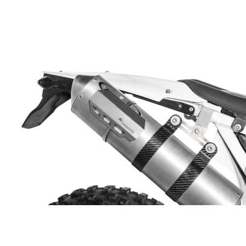 Vermeiden Sie angesengte Taschen und Seitenwände durch Berührung mit dem Auspuff! Die Hitzeschutzblende von Touratech ist der einfache, leichte und universelle Wärme-Problemlöser für nahezu alle Motorrad-Auspuffanlagen.