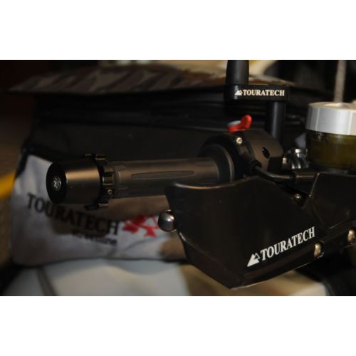 Die Kaoko Cruise controll ersetzt das originale Lenkerendgewicht. Mit der griffigen Rändelschraube kann das Gas in seiner Stellung fixiert werden. Somit kann man auf langen Fahrten die rechte Hand deutlich entlasten.