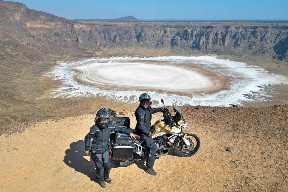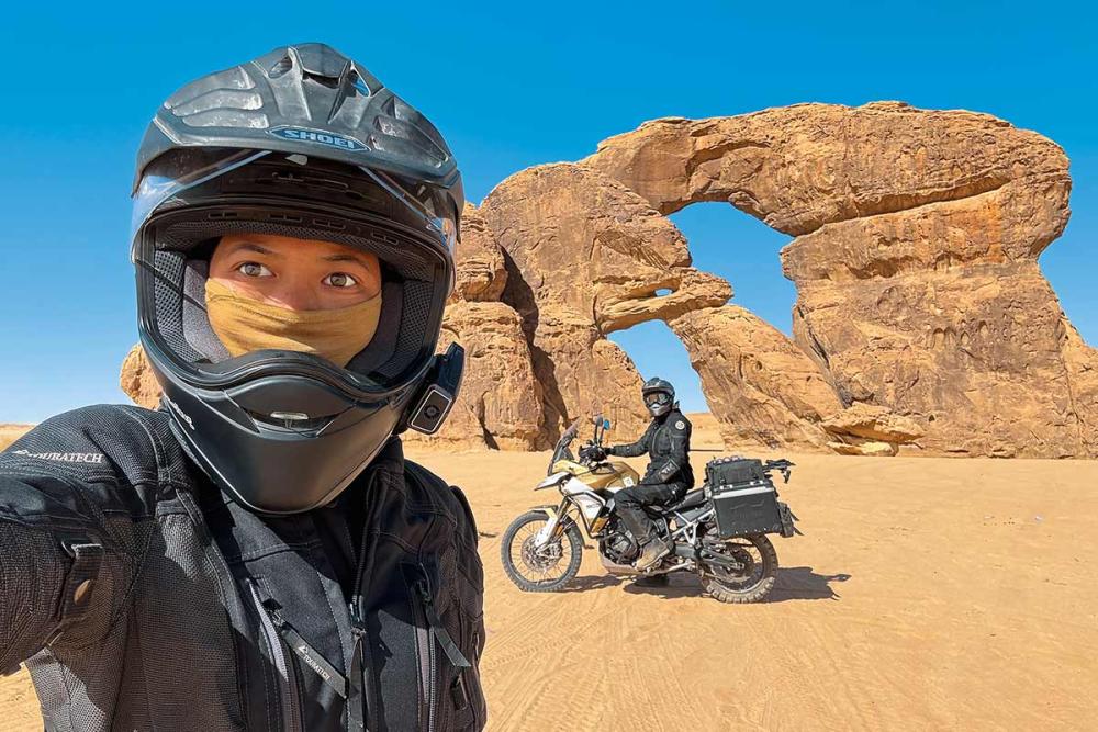 Die Einreise nach Saudi-Arabien war wie der Eintritt in eine neue Welt. Die Weite des Landes fiel uns sofort auf – die Entfernungen zwischen den Orten schienen endlos. Wir schlängelten uns auf kurvenreichen Straßen durch dramatische Felsformationen und durchquerten weitläufige Wüstenlandschaften, bis wir eine Region mit riesigen Vulkankratern erreichten. Das felsige Terrain stellte unsere Fahrfähigkeiten und unsere Kondition auf die Probe.