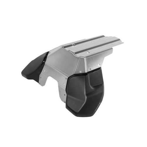 Die beiden getrennt montierten Tankschutzplatten sind hydrogeformt für die perfekte Passform. Sie schützen neben weit ausladenden unteren Bereichen des Tanks auch die Benzinpumpe sowie die Benzinhähne wie ein Panzer die Schildkröte.