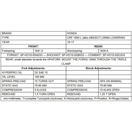 Bei allen Fahrwerkslösungen sollten Heck- und Frontbereich des Motorrades angepasst werden. Die passende Komponenten für das Heck der Honda CRF1000L Africa Twin ADV finden sie in unserer Zubehörempfehlung Beim Austausch nur einer Komponente, wird kein optimales Fahrverhalten erzielt.