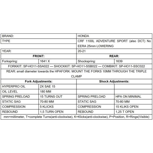 - Die passenden Komponenten für ihre Honda CRF1100L Adventure Sports finden sie im Zubehör dieses Artikels. „Bitte nach unten scrollen“
