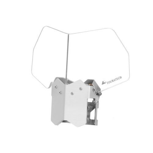 Er wird einfach auf den Windschild aufgesteckt und über einen Schnellverschluss verriegelt. Für den Einsatz im Gelände lässt sich der Spoiler einfach und sekundenschnell entfernen.
