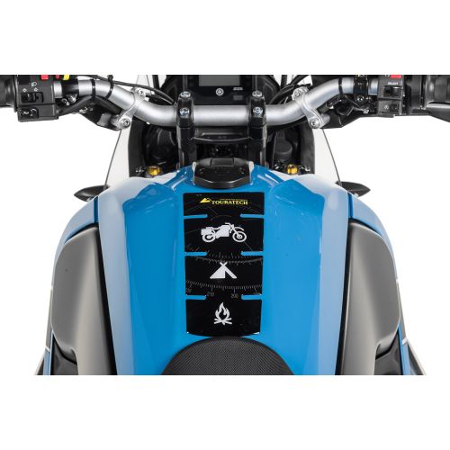 Das Touratech Tankpad zum selbst aufkleben ist nicht nur optisch ein absoluter Hingucker, sondern schützt auch effektiv die Oberfläche des Tanks gegen Schmutz und Kratzer.