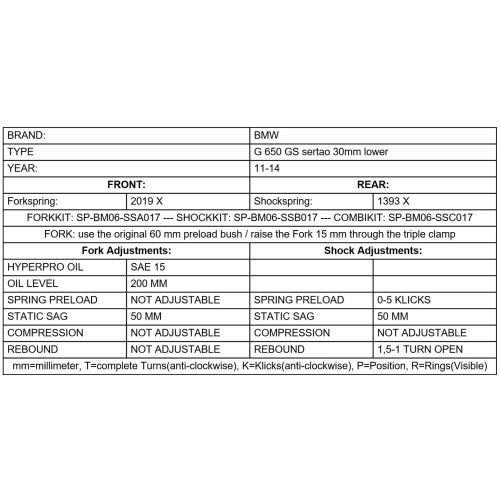 Touratech Suspension Tieferlegung -30mm für BMW G 650 GS Sertao 2011 - 2014