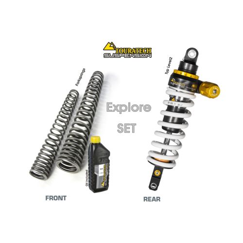 Das Touratech Suspension World Travel Edition Level2 Set ist bei Fernreise- und Tourenbetrieb für die Yamaha Ténéré 700 die richtige Wahl. Mehr Performance und Komfort für ihre Yamaha Ténéré 700 mit dem Touratech Suspension Federbein-Typ Level2. Ob sie nun zur Kurvenhatz oder einer gemütlichen Tour mit Freunden aufbrechen, der große Einstellbereich ermöglicht eine treffendere Anpassung von Balance und Dämpfung, als dies bei den Serienkomponenten möglich ist. Das Level 2 Federbein in Emulsionsausführung kann zur Beladungsanpassung auf das große Reisegepäck per Handrad und hydraulischer Federvorspannung justiert werden. Die progressiven Gabelfedern sind perfekt auf die Anforderungen der Gabel für die Yamaha Ténéré 700 ausgelegt Sie verleihen der Gabel eine bessere Abstimmung für die Anforderungen des Motorradreisens. Zu dem werden sie ein deutlich verbessertes Ansprechverhalten und höhere Reserven im Grenzbereich erfahren.