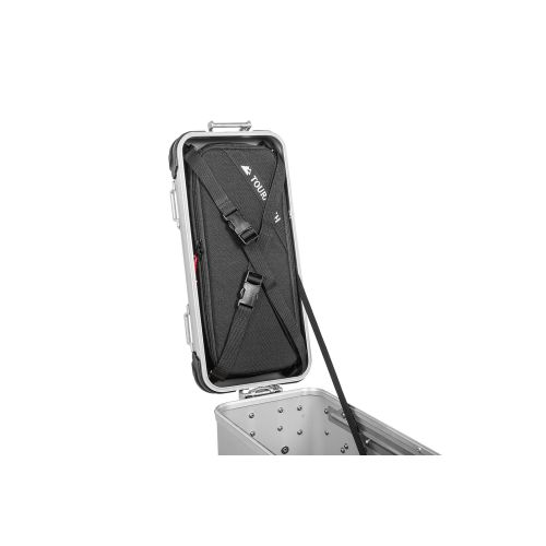 Die an Unter- und Oberseite mit 7 mm Schaumstoff verstärkte Tasche wird mit zwei Spannriemen direkt im Deckel des ZEGA Evo Koffers verzurrt. Im Innern der Tasche besteht die Möglichkeit, schweres Gepäck (z.B. eine Werkzeugrolle) an beliebiger Stelle mit optionalen Spannriemen sicher zu verzurren. Ein Tragegriff ermöglicht es, die aus robustem, schmutzabweisendem Cordura gefertigte Tasche überall mitzunehmen.
