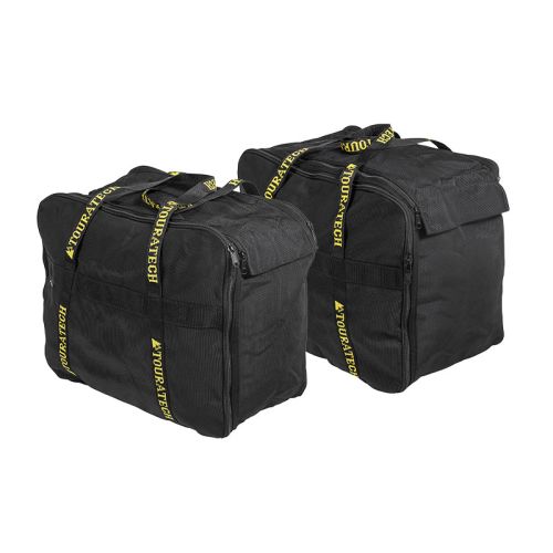 Neben robusten, pistenfesten, schwarzen Edelstahl-Kofferträgern und passenden schwarz eloxierten Aluminium-Koffern, umfasst das Set auch zwei Kofferinnentaschen aus strapazierfähigem, schmutzabweisendem Nylon-Gewebe sowie ein passendes, gleichschließendes Schlossset mit sechs Schlössern.